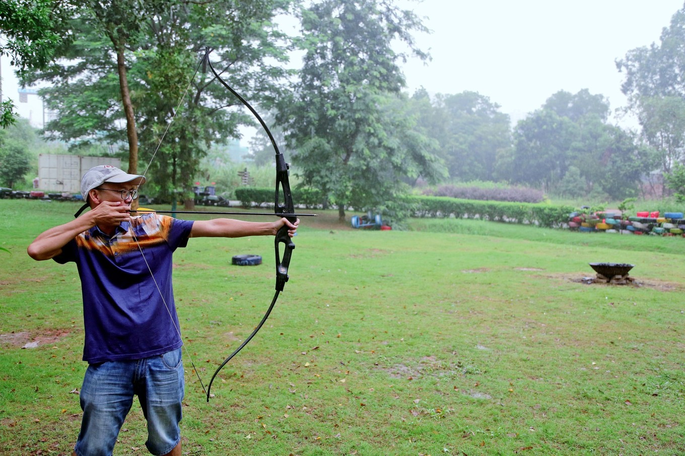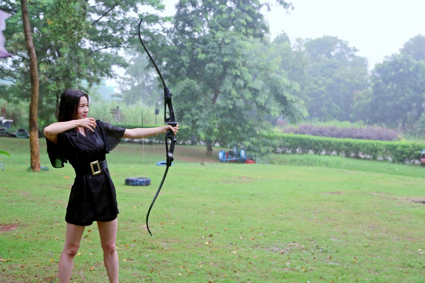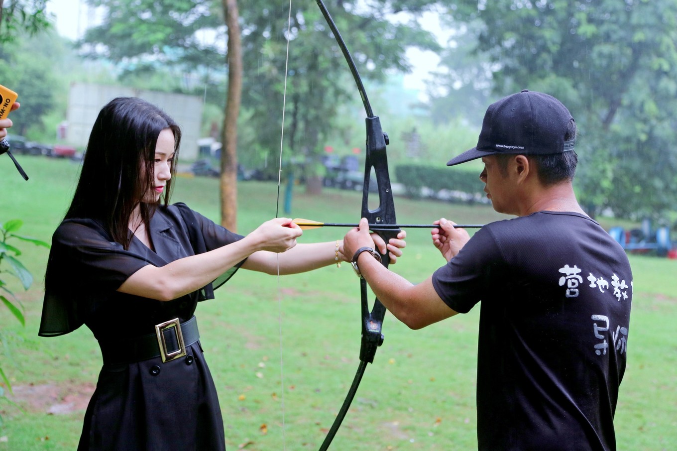 玩完皮划艇,可以去射箭,不会没关系,有专门的教练亲自指导。小伙伴刚听完教练讲解,雨,再一次飘了起来,不过,教练很敬业,在雨中依然为大家耐心指导。在此,给教练点个赞!