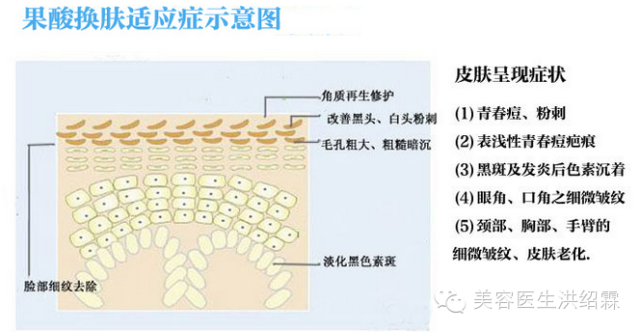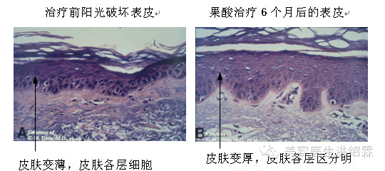 经过40余年的发展和来自超过90多个国家及地区的美容专家、皮肤科医师临床验证,果酸通过促进表皮细胞新陈代谢速度,同时作用于表皮及真皮层,对改善皮肤角化异常、光老化(色斑、色沉、皱纹松弛)有十分明显的疗效,被公认为是安全、有效的医学美容科技。