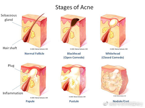 1.毛囊皮脂腺导管细胞增生(角化过度),堵塞了出口,令皮脂无法排出。