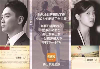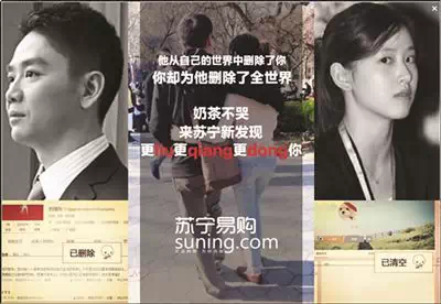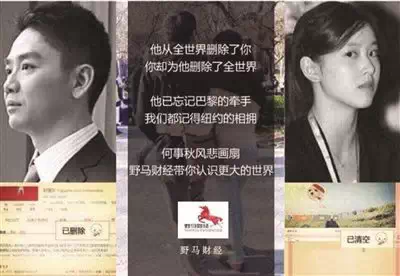 然而,网友的关注点并未因这封声明轻易转移。近日,网友将两人默契删帖的情形总结为“他从全世界删除了你,你却为他删除了全世界”,煽情地感慨“他已忘记巴黎的牵手,我们都记得纽约的相拥”,并配上“京东情侣”的独照与合照,暗示两人分道扬镳。以这段图文为基础的品牌文案随即走红网络,甚至有文案嵌入了两人的名字。