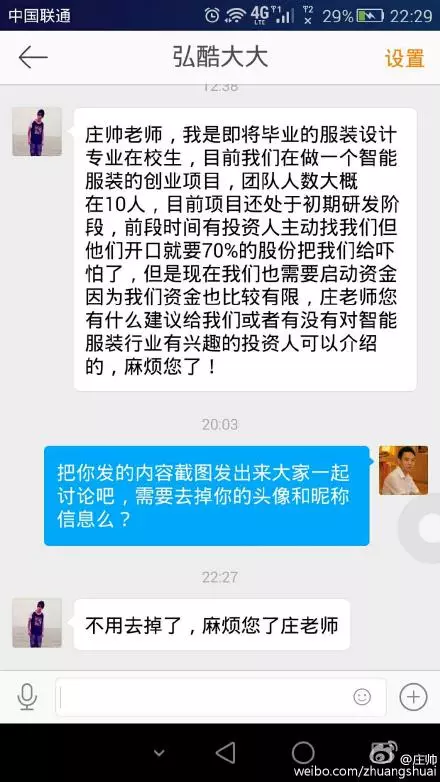 帮帮忙:智能服装去年我自己YY到了光做的可联网变化的形态了。不过还真有服装专业的学生团队做起了智能服装创业项目,居然有投资人想投资!那么问题来了:怎么不让投资人又让他们不要狮子大开口占股70%这么多呢?