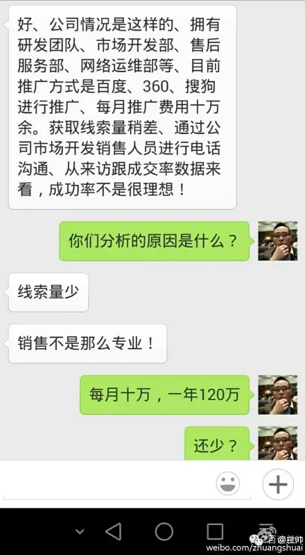 @庄帅:我们分析来看:1,推广渠道要改善2,销售机制不健全。项目客户是非常认同的、从去年我们的数据分析来看、只要到公司来访促成签约的10个客户成交7个以上,期望值是8、5!所以如何在花费的推广费用上更好的得到线索量是最重要的问题、让更多找项目创业的群体看到我们产品