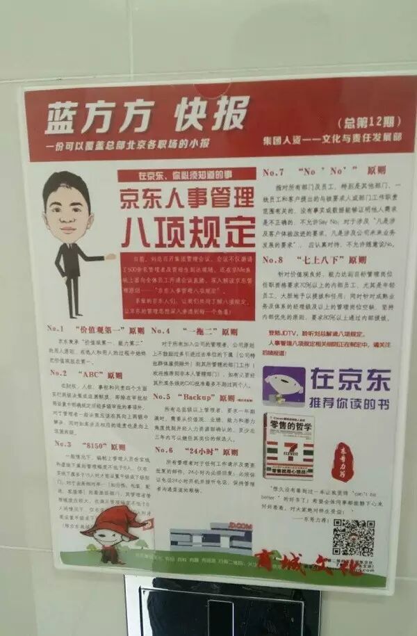这份快报的的确确是贴在北京亦庄京东集团总部的某层男厕所内。