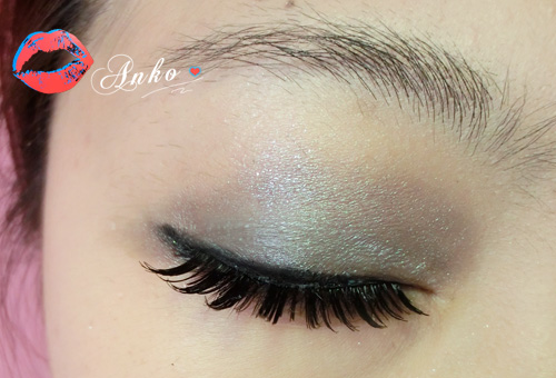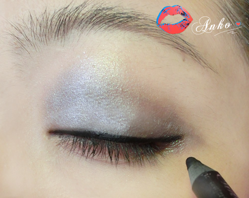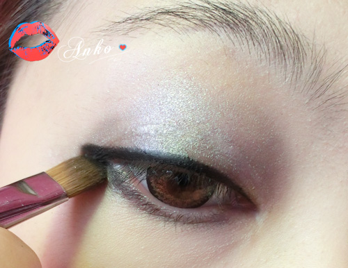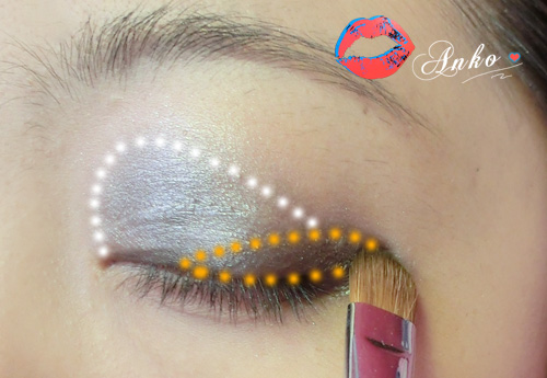 1#刷选用浅银灰色,按照下面白点指示部分涂刷上眼睑!