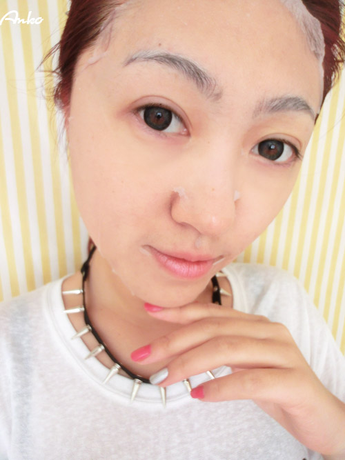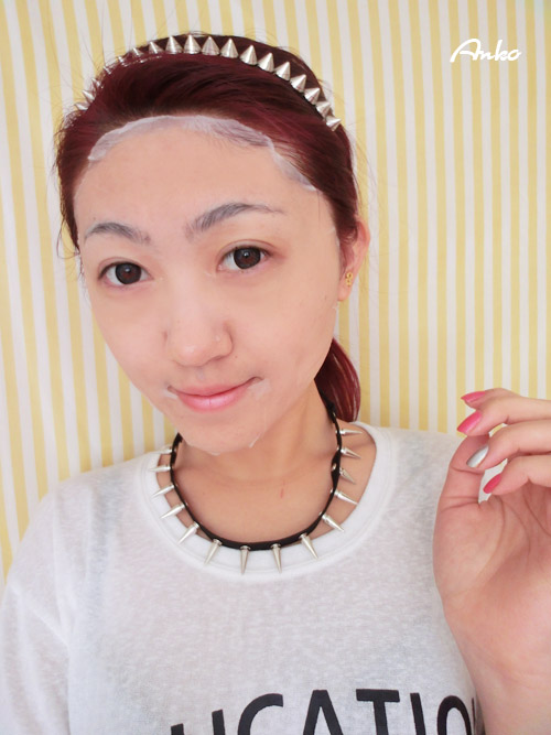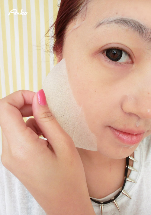 但是我个人觉得为了让蚕丝面膜更加服帖,我先把白色薄膜取掉,然后再匀整的敷在脸上!