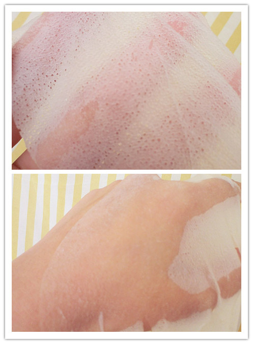 这里可以看到DLLZ蚕丝面膜的轻薄程度,明显的能够看到导入孔,渗透性真的是超强哦!