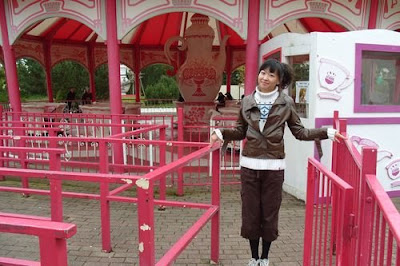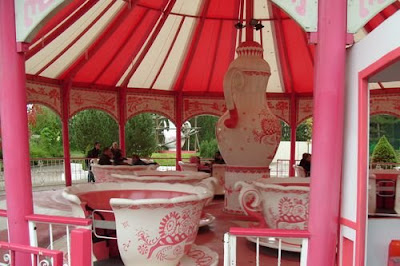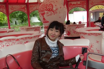 第二个游戏是旋转茶杯,说实话这是一个很弱智的游戏设施,中间一个粉色瓷茶壶,人坐在茶杯里,围着茶壶旋转,同时茶杯也在自传,看起来是个轻松游戏,我忐忑的尝试了一下,刚开始觉得速度还行,等到机器转动到高潮时我就有点头晕了,最后想着怎么还没转完啊,再不转完我就要吐了,想着这些还要装出泰然自若的表情。
