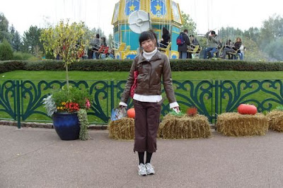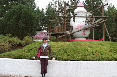 照片八:等待玩旋转茶杯前留影,公园人少吧!