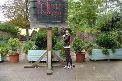 之后我们走到了Terror House,恐怖屋,其实大家都知道,恐怖屋就是吓人的,无非就是你在里面走,里面放着吓人的音乐,时不时一个什么东西动一下,跳出来。