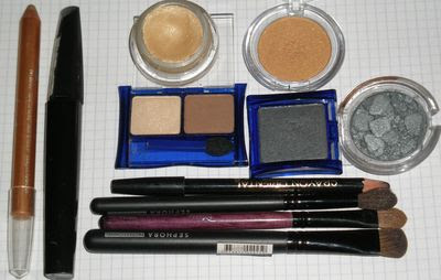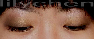 这是个所谓摩登眼影,至少在欧美那是相当流行的,由金色和黑色组成,在欧美几乎所有的女人都崇拜这两个颜色:黑色代表高贵和典雅,金色代表繁盛。冬天要是有机会来到欧洲,在火车站(人多的地方)一站,一水黑,大街上走,往脚上看,到处都是或金色或银色的鞋,从这点大家就可以看出,金色和黑色在欧美意味着什么,这两个颜色加上银色恐怕就等于欧美时尚了,于是今天,我再次应景,虽说我不是特别喜欢这种打扮,画一个“巴黎之夜”眼影,不得不说,用了这两个颜色,你就变得摩登了。