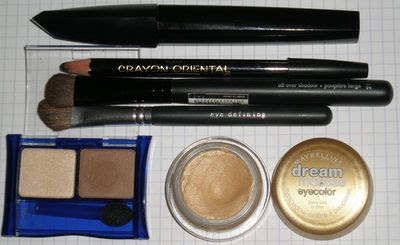 2用美宝莲赭石双色之浅色涂满眼皮,包括眉骨(我喜欢这种光泽)