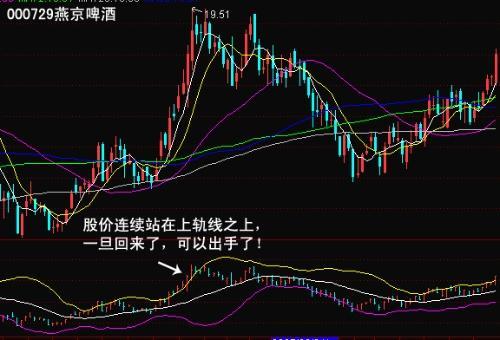 1、股价上升穿越布林线上轨时,回档机率大;