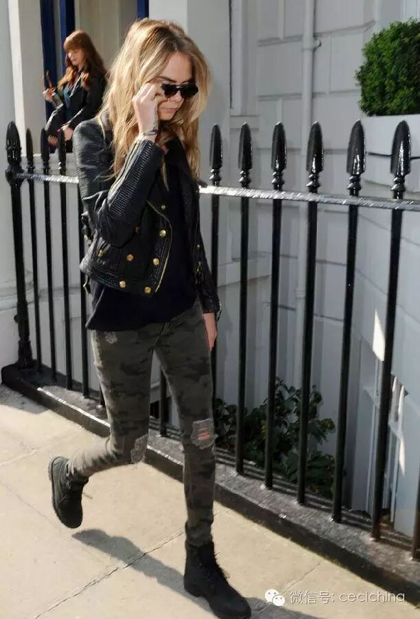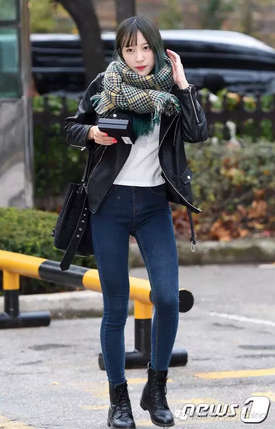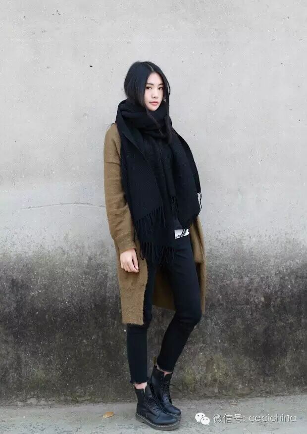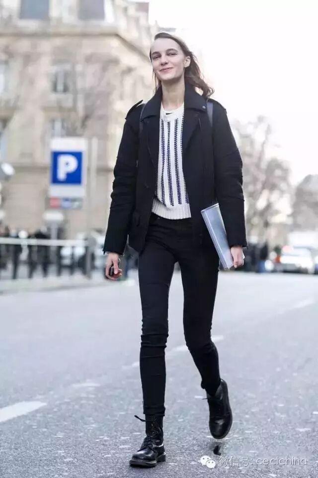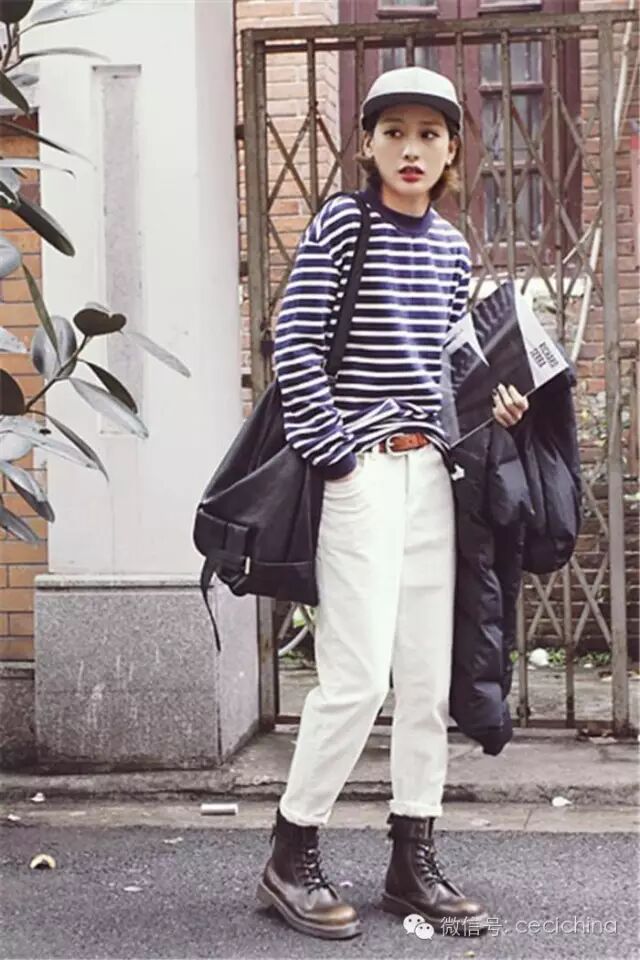 其次,对下半身不太自信的女生,在穿马丁靴时尽量选择和裤子同色系的款式,这样搭起来最显瘦显高。