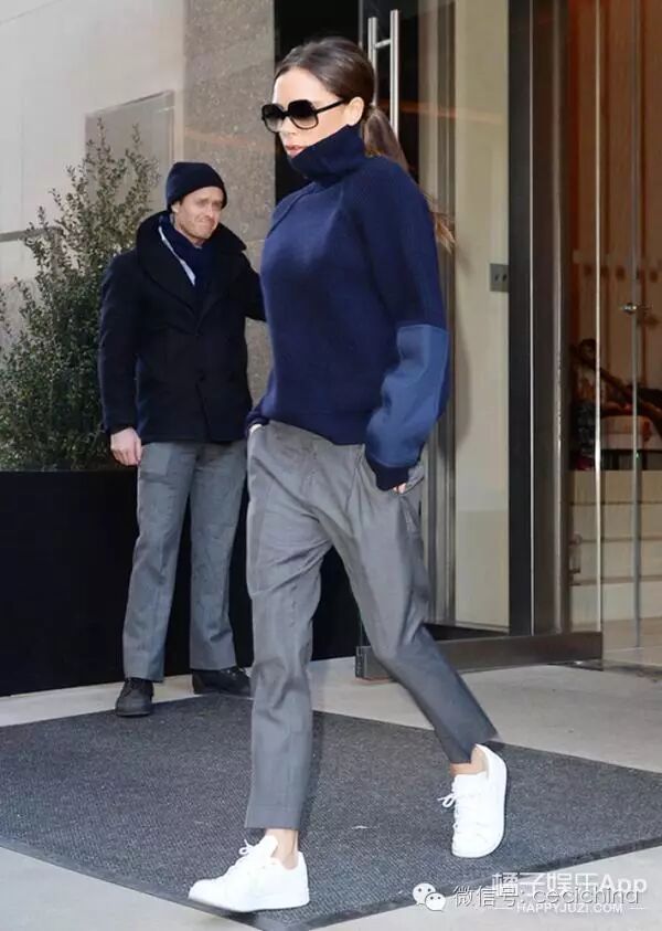 另外,一本正经的西装裤和运动鞋搭在一起也是超受欢迎,帅气到不行,显得腿长又很细。