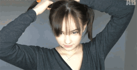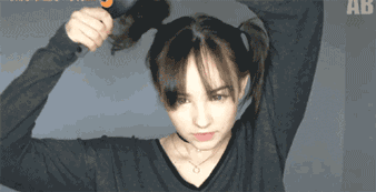 第三步:揪起马尾辫的发尾,按你喜欢的方式缠绕,在缠绕的过程中注意不要大力气的去按压头发,让它保持蓬松的状态。