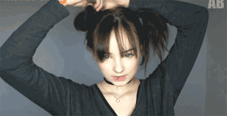 1、双丸子头的重点在于头发的松散度。头发要时刻保持蓬松,紧贴头皮效果会显呆楞~在扎好后可以适当整理一些碎头发出来。