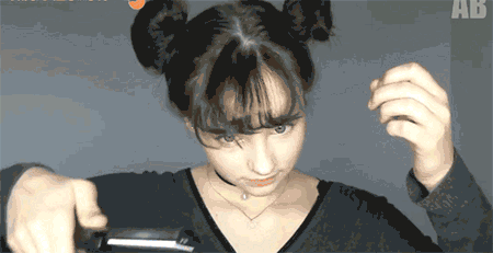第五步:打理刘海的头发;教程中的姑娘用刘海制造可爱感,若没有刘海的宝宝们要将鬓角的发丝多拽出来些,微微的凌乱感能让“哪吒头”效果更好。