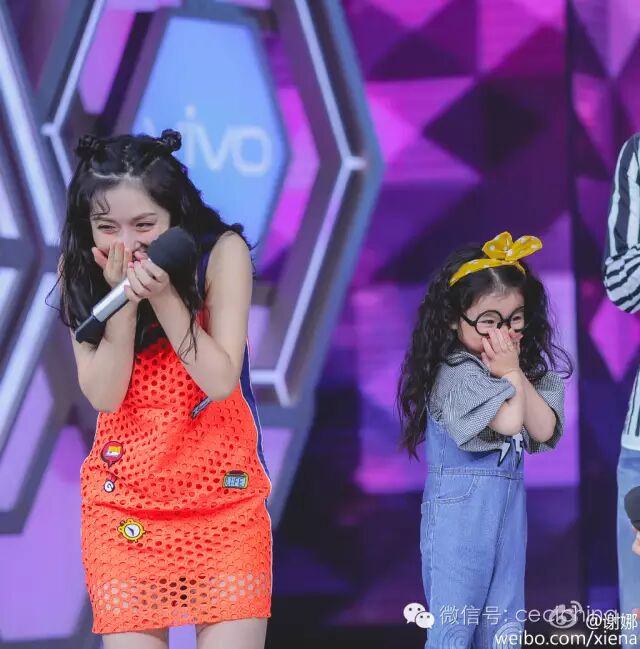 太阳女神在节目中也扎了两个可爱的揪揪,还和小萌神崔雅涵斗“萌术”呢!