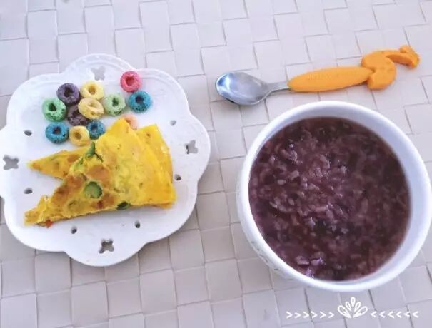 芦笋烘蛋配上黑米粥和麦圈,营养的一天开始啦~