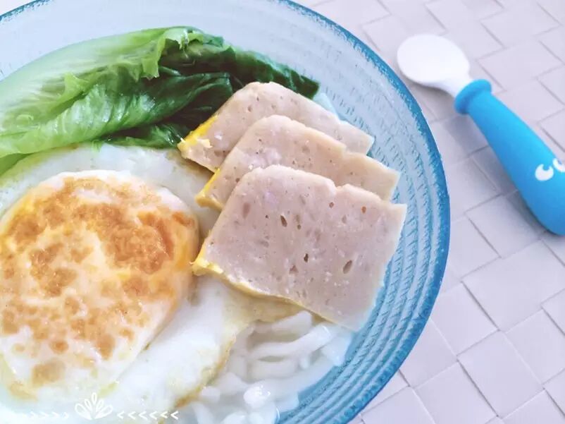 做好的午餐肉马上就能做一道美味的餐蛋面给孩子当早餐了~