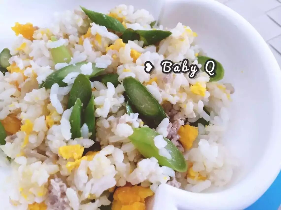 其中山药含有丰富的维生素及矿物质,具有很好的滋养作用;芦笋富含多种氨基酸、蛋白质和维生素,其含量均高于一般蔬菜;再加上鸡蛋超多的蛋白质,这道饭菜满足了孩子一天的营养需求。