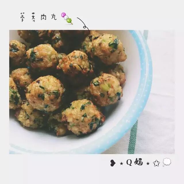 ④ 加入适量淀粉,一点盐和芝麻油,搅拌均匀,然后团成小丸子。