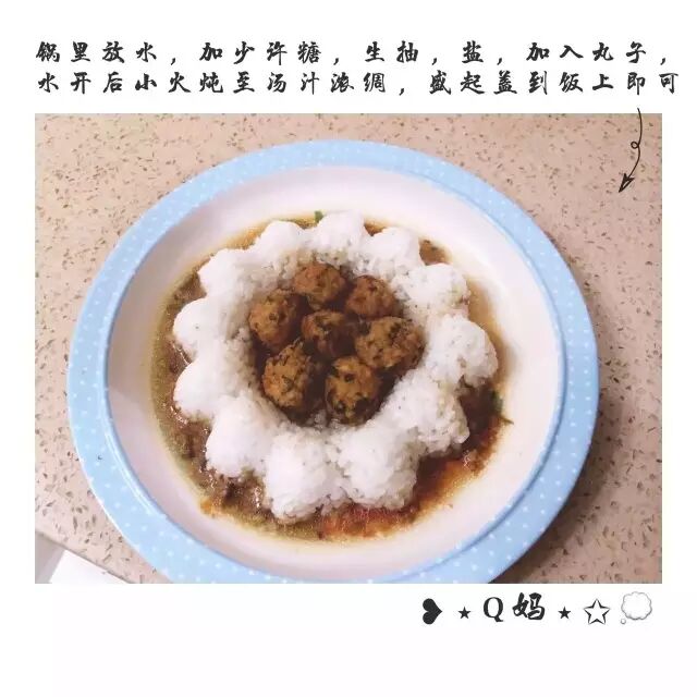 锅里放水,加少许糖、生抽、盐,加入肉丸,水开后小火炖至汤汁浓稠,然后盛出浇在米饭上即可。