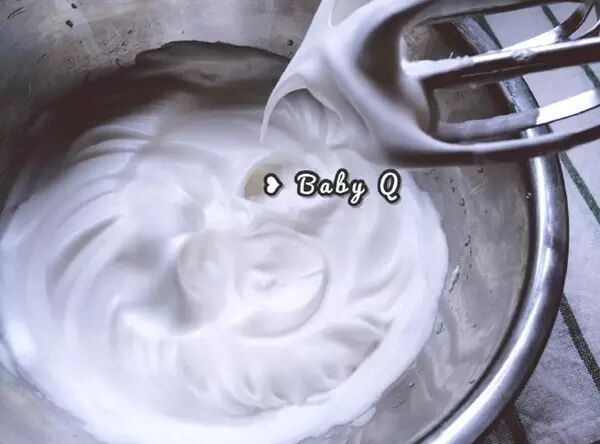 蛋清加入白砂糖打发,提起打蛋器有弯钩即可。