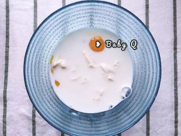 蛋黄、酸奶、牛奶、盐混合,自制酸奶比较稠,要搅散。