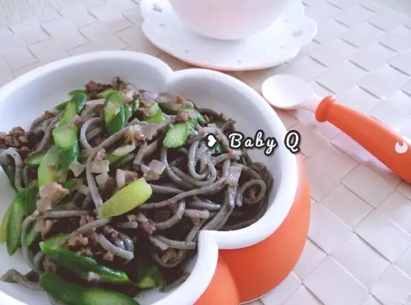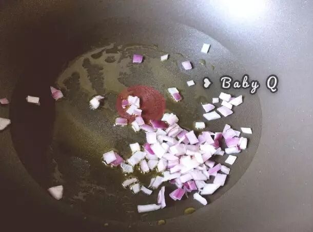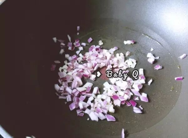 准备:牛肉剁成肉糜,加点生抽,淀粉腌一下,洋葱切丁,芦笋切小块,黑芝麻面。