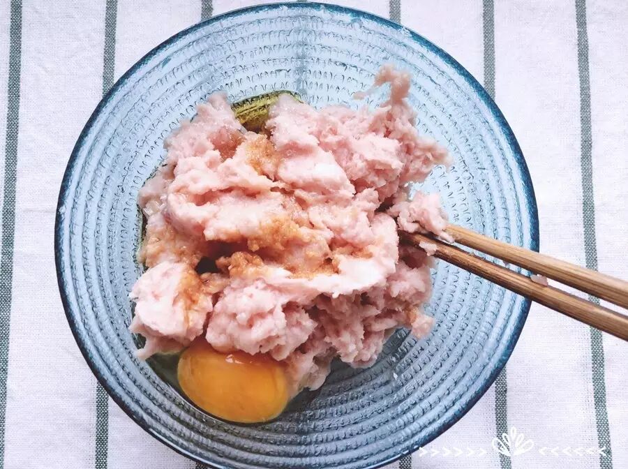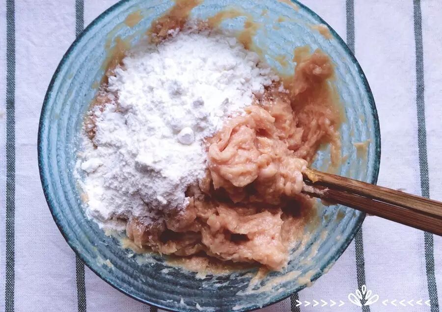 搅散后加入少许面粉、淀粉和水,然后朝一个方向搅拌,搅拌越久肉咬起来会越有嚼劲。
