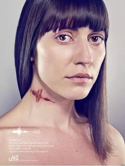 不是所有的暴力都会显现在肉体上。(疤痕的形状就像暴力话语的声波一样)
