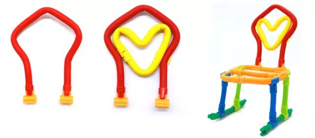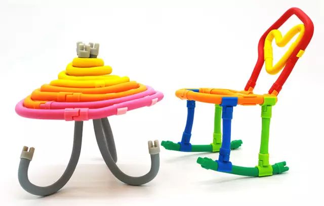 最重要的是告诉孩子组合扭扭棒的方法不是唯一的。虽然桌子腿和椅子腿都是用来做支撑的,但是做法有区别。桌子腿靠扭扭棒弯曲变形来做支撑点,这是利用了扭扭棒易弯曲的特点,关键是弧线桌子腿美美哒。椅子腿则靠小零件连接固定就好,小巧精致,关键是灵活得很呐。