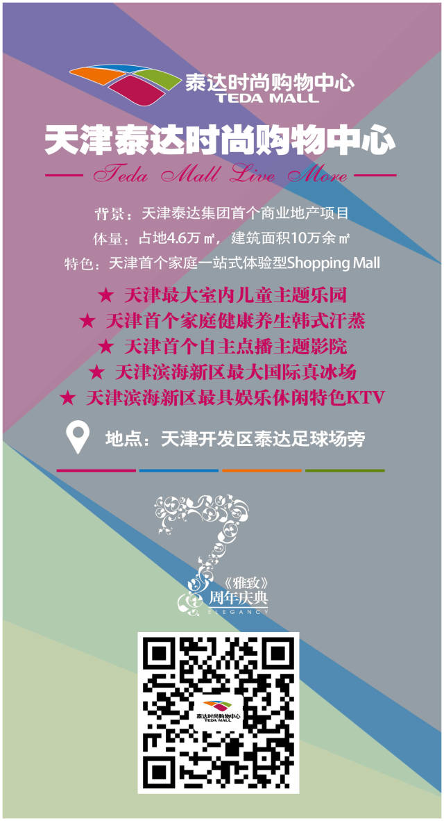 2015年2月1日,《雅致》杂志成功举办了“天津我爱你”城市庆典暨《雅致》7周年致雅大奖颁奖大典。《雅致》作为一本着眼天津的时尚生活杂志,一直以倡导品质生活为己任。历年来,“致雅大奖”颁奖典礼旨在为京津时尚人士提供一个互动交流的时尚社交平台。本届盛典一如既往的获得了津京地区名媛、名仕、艺术家、企业家、独立设计师、媒体等嘉宾的倾力支持,更获得诸多专业时尚人士的关注和赞誉。在此,特别感谢复康路十一号手表厂项目与泰达时尚购物中心对此次大典的鼎力赞助。