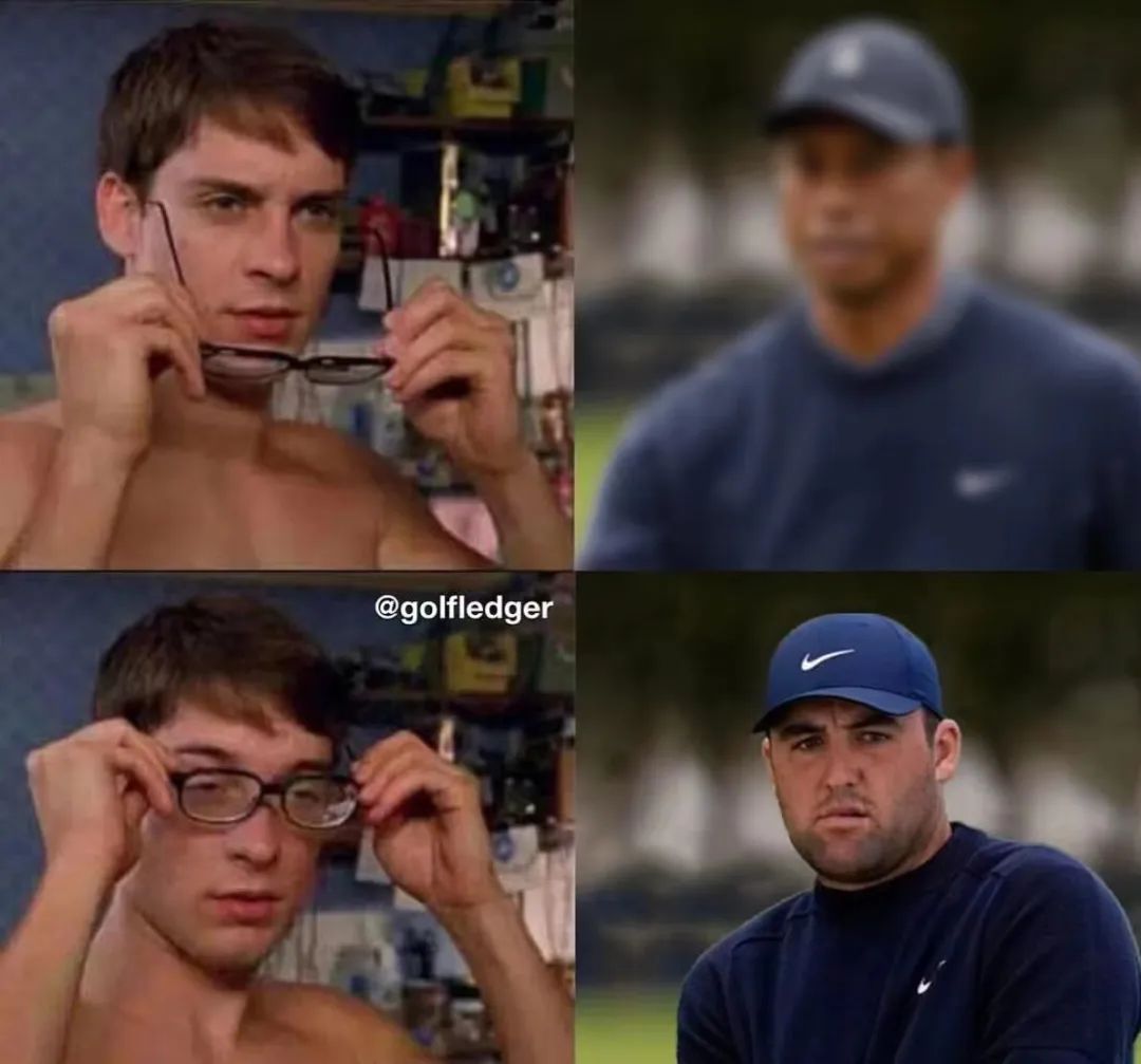 当斯科蒂·舍夫勒在2022美国大师赛次轮打出67杆从而获得5杆的领先优势时,有一个段子在高尔夫球友流传甚广:有位视力不佳的球迷在直播画面上看到领先者单轮一共抓到7只小鸟的神级表现时,习惯性地以为这是球王老虎伍兹的成绩。直到戴上眼镜,他才意识到自己看错了。