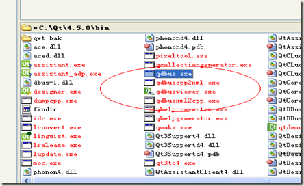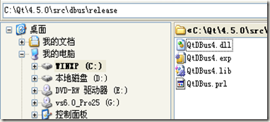 在C:\Qt\4.5.0\src\dbus\release目录下生成如下文件,将生成的dll文件和lib文件拷贝到qt的bin目录和lib目录下