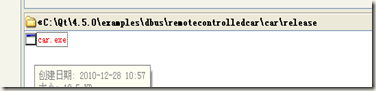 3. 启动遥控汽车程序([QT-dir]\examples\dbus\remotecontrolledcar\car\release\car.exe), 这时候, 在qdbusviewer的Service栏目中会多出一个服务, com.trolltech.CarExample