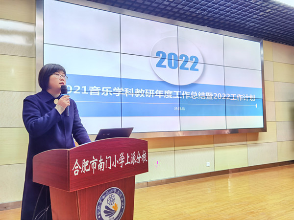 第二项议程:肥西县中小学音乐学科工作总结及工作布置。教研员汤晶晶老师总结回顾了2021年度音乐学科工作,介绍2022年工作思路,并布置本学年教研工作。2022年,中小学音乐学科将继续关注课堂教学,以大单元教学为主线,通过培训、评比等教研活动,加强教研团队建设,助力音乐教师专业成长。同时,汤老师提出通过教师基本大赛等系列活动,调动教师对音乐艺术的热情,以赛促研,更好的锻炼教师的心理素质和音乐专业素养,进一步推进我县音乐教育的纵深发展。
