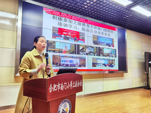 南门小学上派分校王经伦、经开区中心学校凃正霞、菁菁小学周珊珊、上派初级中学杨晓芸四位教研组长代表轮流汇报发言,他们针对本校2021年教研工作总结和2022年教研工作计划进行了详细的阐述。老师们认真梳理了本校教研工作的亮点,这不仅是相互学习,共同提高的经验交流,更是教研智慧的一次碰撞。齐头并进,以赛带研,全面发展高素质的教研团队。