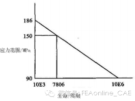 把S=150MPa代入上式,N=7860。即当应力为150MPa时,应力循环为7806次。