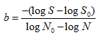 b)指数式:em s•N=C。两边取对数后成为S=A B lg N,是半对数关系(下图右)。