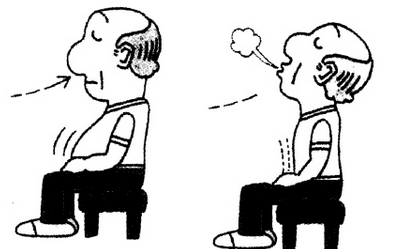 老人们先慢慢地由鼻孔吸气,吸气过程中,胸廓上提,腹部会慢慢鼓起,再继续吸气,使整个肺充满空气,这时肋骨部分会上抬,胸腔会扩大。然后屏住呼吸5-10秒,停顿2-3秒钟后,吐气,接着开始新一次的呼吸。