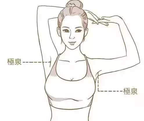 腋窝的极泉穴是心经的重要穴位,可以去心脏的郁火毒素,应常常去按揉,以疏通这口井。