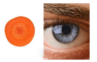 2、切开的胡罗卜就像人的眼睛,有瞳孔、虹膜以及放射的线条。科学研究表明,大量的胡萝卜素能促进人体血液流向眼部,保护视力,让眼睛更明亮。