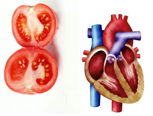 1、番茄有四个腔室,并且是红色的,这与我们的心脏一样。实验证实,番茄饱含番茄红素,高胆固醇患者要想降低心脏病和中风危险,不妨多吃点。