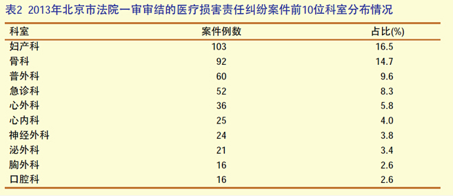 在中国的各种调查中,妇产科医疗纠纷也常年列在前面(表格来自《北京市2013年诉讼医疗纠纷大样本研究》)