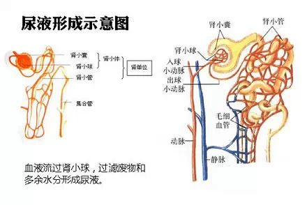 尿液是在肾脏中形成的,肾脏分为生尿和排尿两部分。而产生尿液的部分叫肾单位,它由肾小体和肾小管组成。