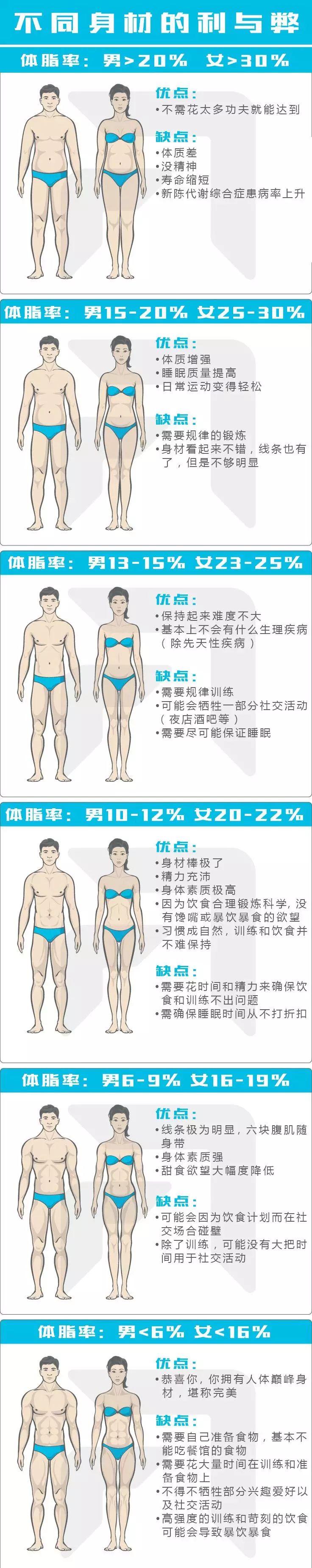 正常成年人的体脂率分别是男性15%~20%和女性25%~30%。