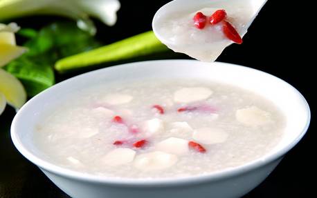 【做法】大米泡半小时,山药洗净,去皮切块。将泡好的米放入锅中,加水煮开,改小火,然后加入枸杞、山药块、冰糖、小葱一起熬煮,稍搅拌,30分钟即可。