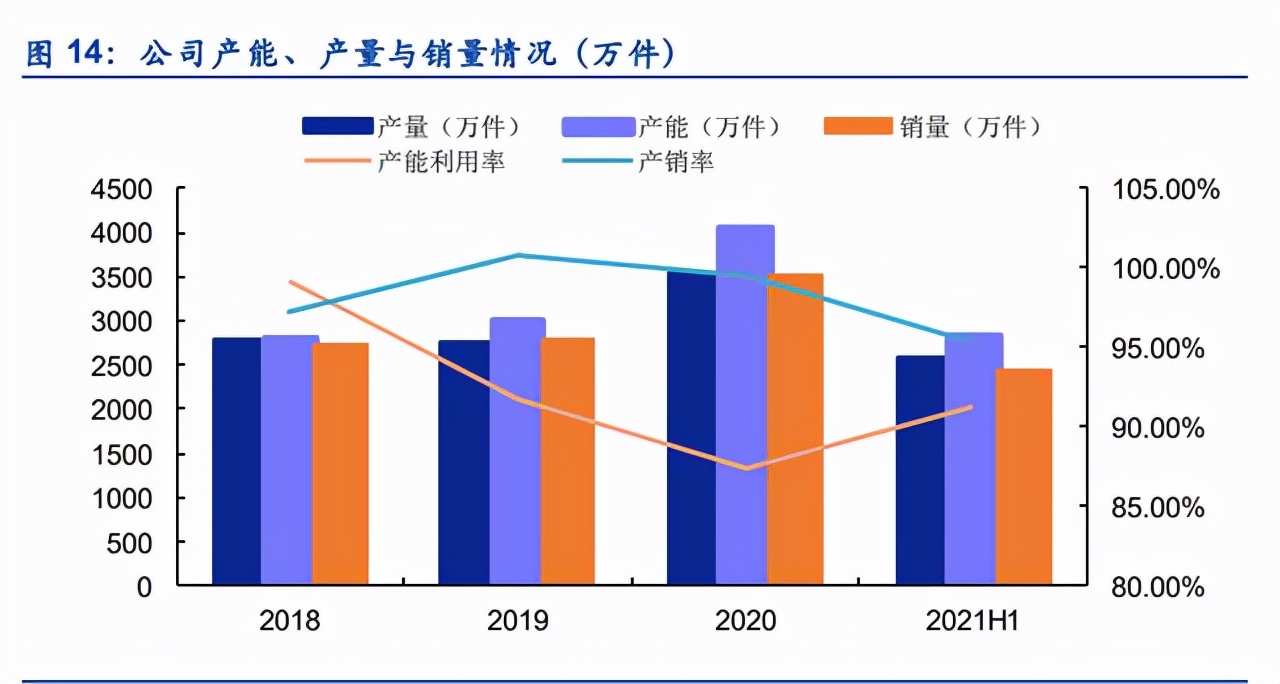 公司2021年上半年公司营业收入1.70亿元,同比增长64.47%;归母净利润2,872.97万元,同比增长86.21%。从细分业务看,公司电子电器类产品2021年上半年创造营收9,486.79万元,同比增长70.21%,占据公司总营收50%以上。公司汽车零部件业务2021H1营收5,886.01万元,同比增长68.19%。